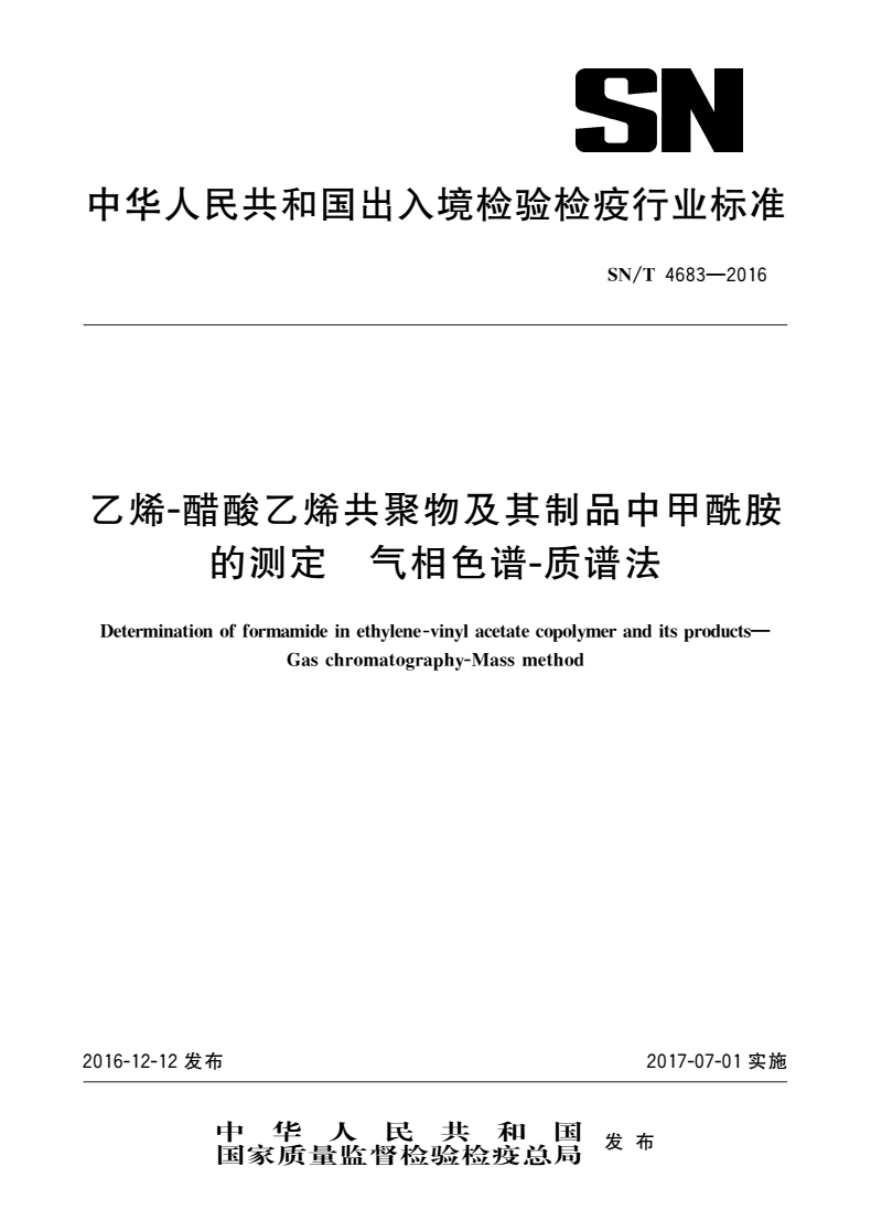 标准名称:乙烯一醋酸乙烯共聚物及其制品中甲酰胺的测定 气相色谱一质谱法