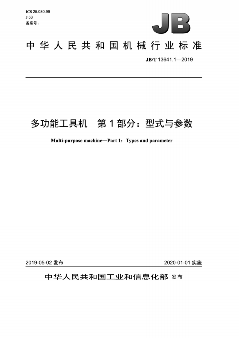 英文名称:Multi-purpose machine. Part 1:Types and parameter