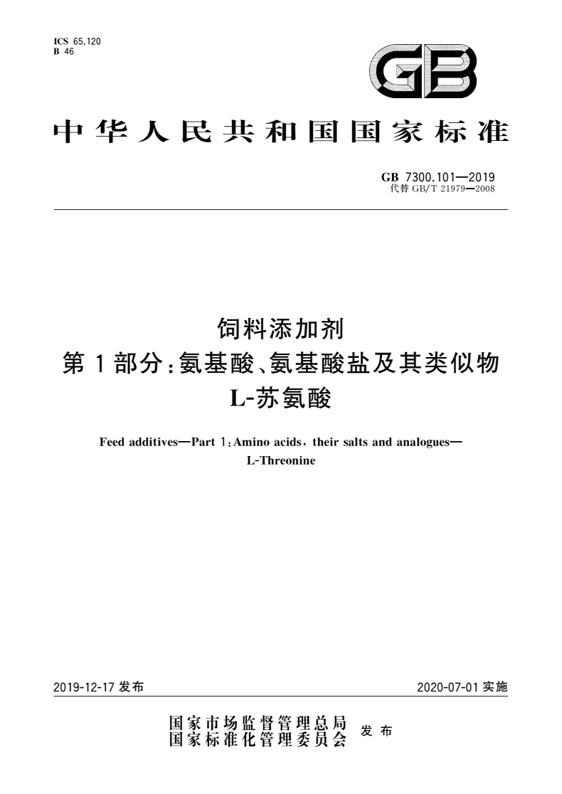 GB 7300.101-2019 饲料添加剂 第1部分:氨基酸、氨基酸盐及其类似物 L-苏氨酸