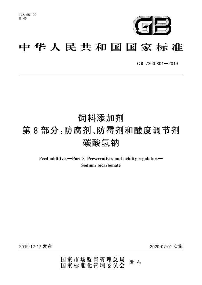 GB 7300.801-2019 饲料添加剂 第8部分:防腐剂、防霉剂和酸度调节剂 碳酸氢钠