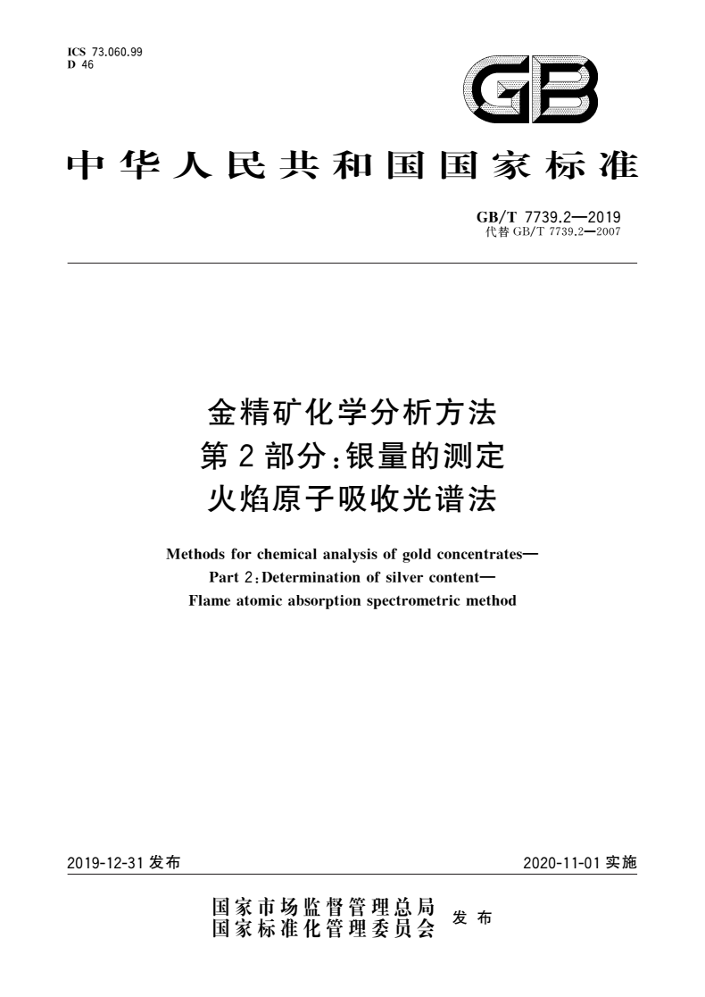 GB/T 7739.2-2019 金精矿化学分析方法 第2部分:银量的测定 火焰原子吸收光谱法
