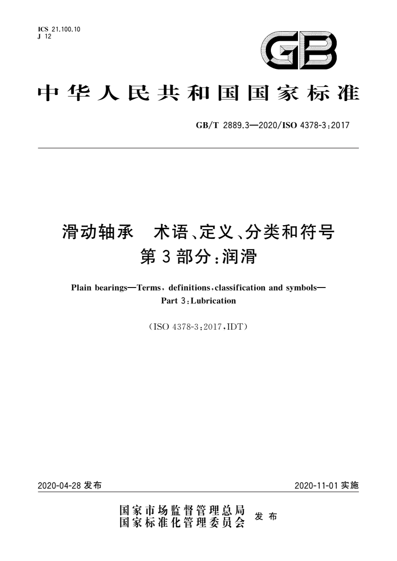 标准名称:滑动轴承 术语、定义、分类和符号 第3部分:润滑