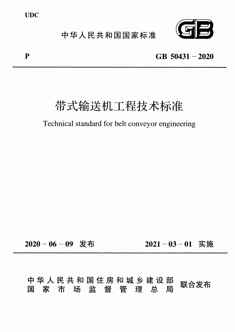 英文名称:Technical standard for belt conveyor engineering