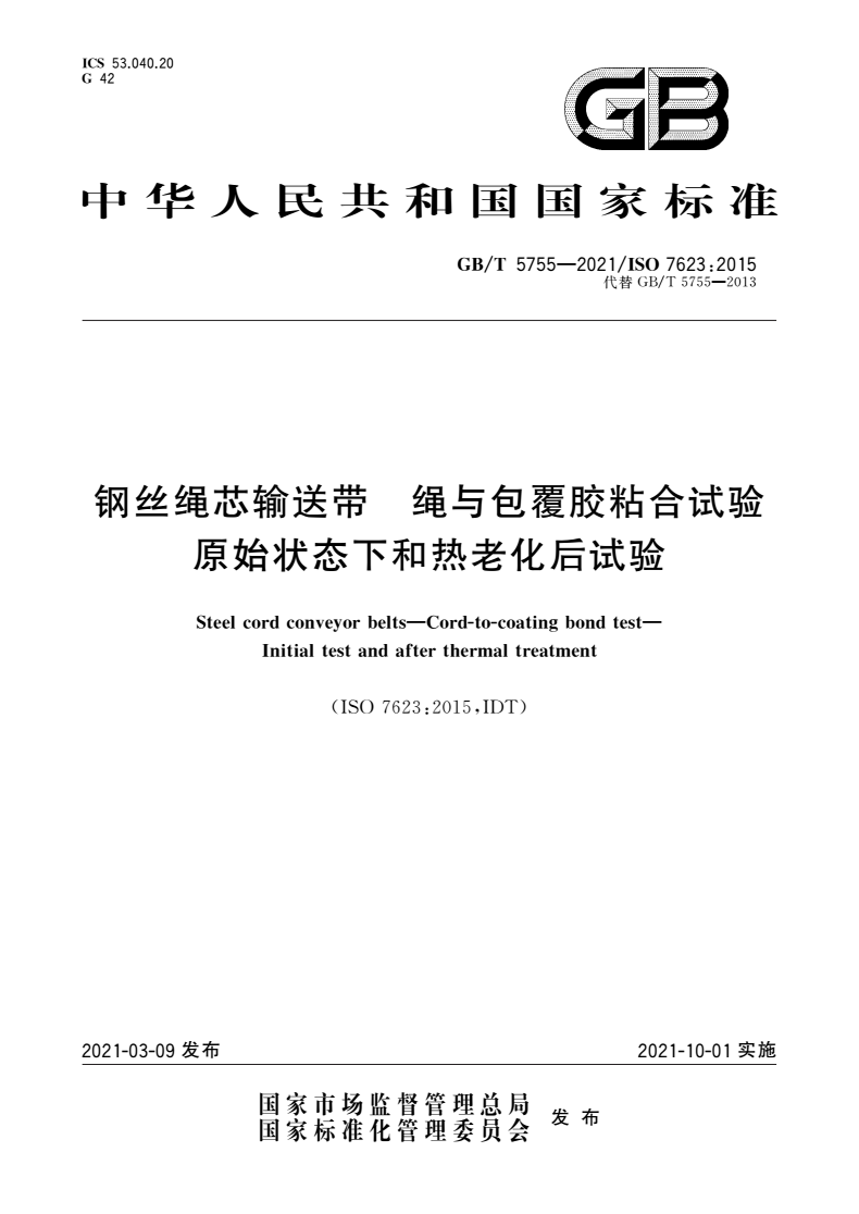 英文名称:Steel cord conveyor belts—Cord-to-coating bond test—Initial test and after thermal treatment