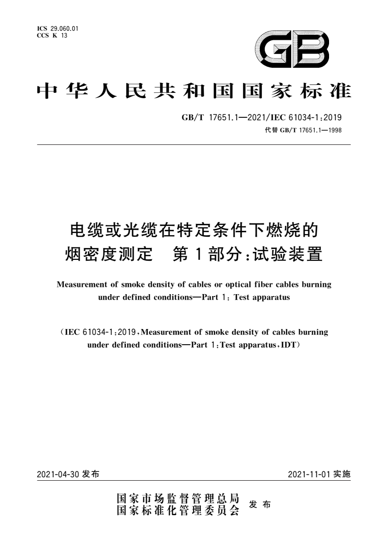 GB/T 17651.1-2021 电缆或光缆在特定条件下燃烧的烟密度测定 第1部分:试验装置