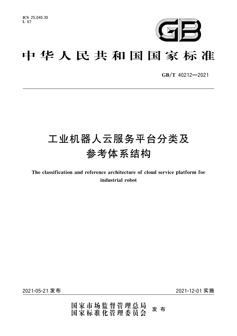 GB/T 40212-2021 工业机器人云服务平台分类及参考体系结构