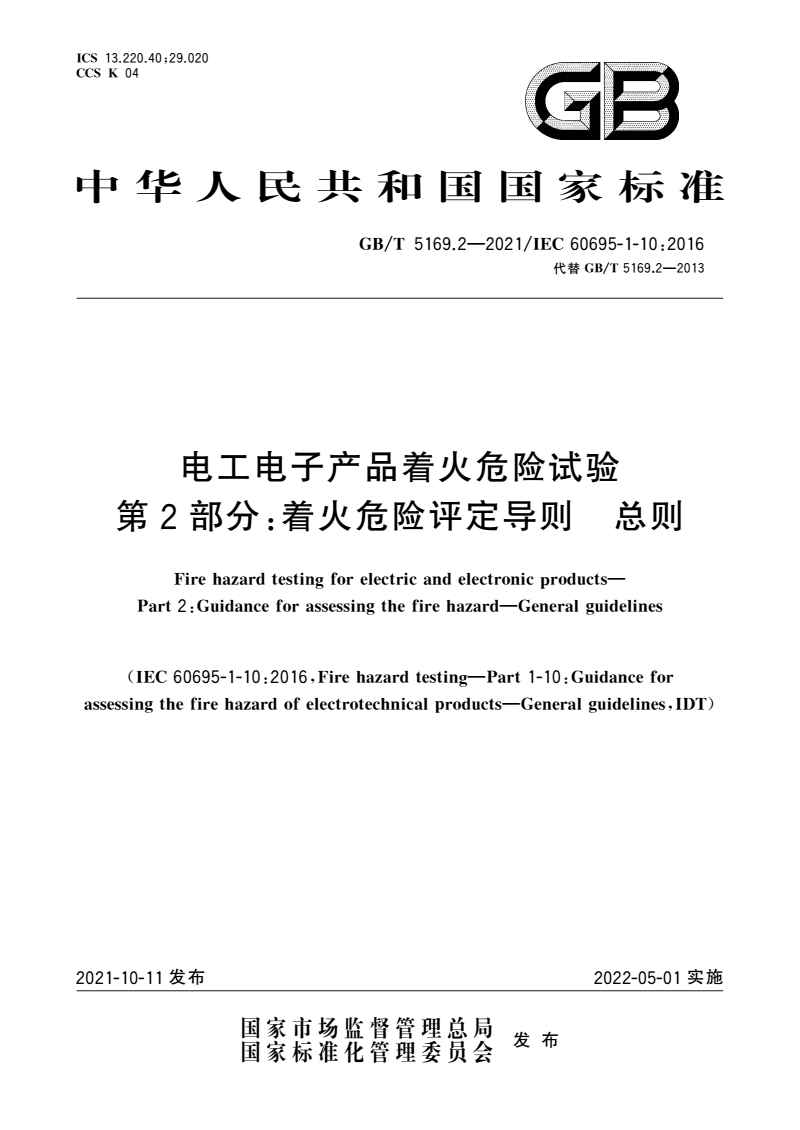 标准名称:电工电子产品着火危险试验 第2部分:着火危险评定导则 总则