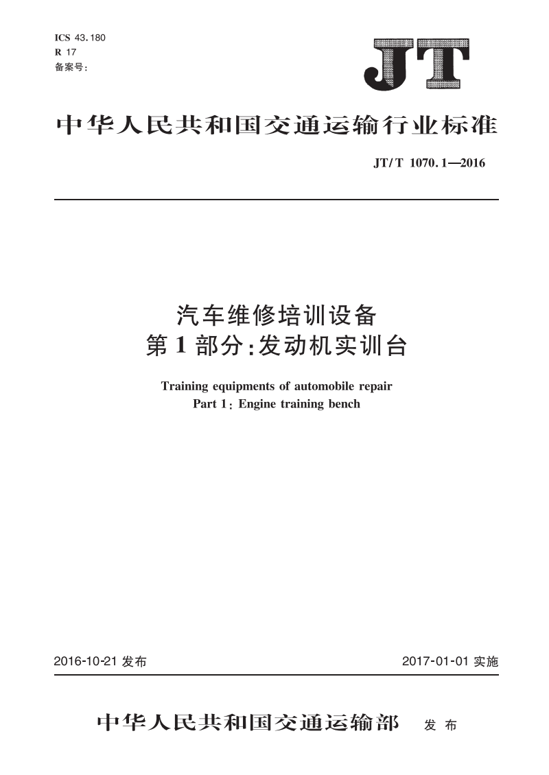 JT/T 1070.1-2016 汽车维修培训设备 第1部分:发动机实训台