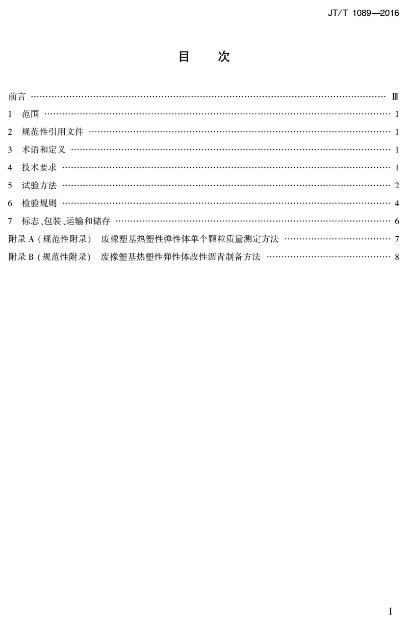 本标准规定了路面沥青改性材料废橡塑基热塑性弹性体的技术要求、试验方法、检验规则,以及标志、包装、运输和贮存。