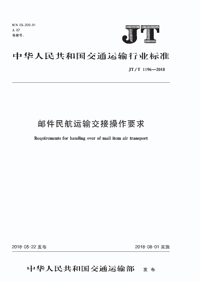 JTT 1196-2018 邮件民航运输交接操作要求.pdf (1.86 MB)