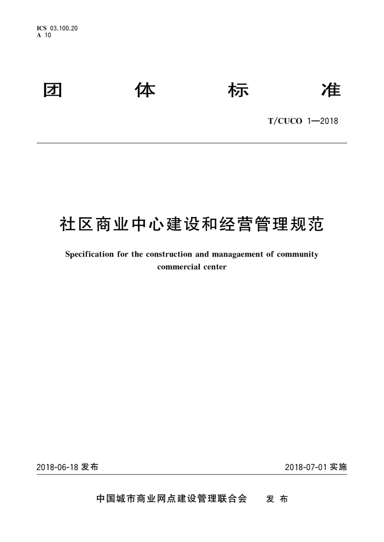起草单位:中国社区商业工作委员会、苏州工业园区邻里中心发展有限公司、中商基业商业投资(北京)有限公司、杭州赢商商业管理有限公司、绿地京城商业管理有限公司、北京商街联合咨询服务有限公司等