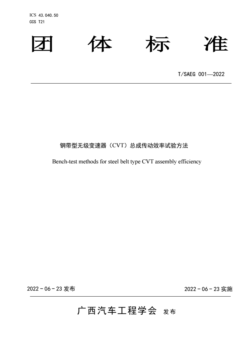 标准名称:钢带型无级变速器(CVT)总成传动效率试验方法