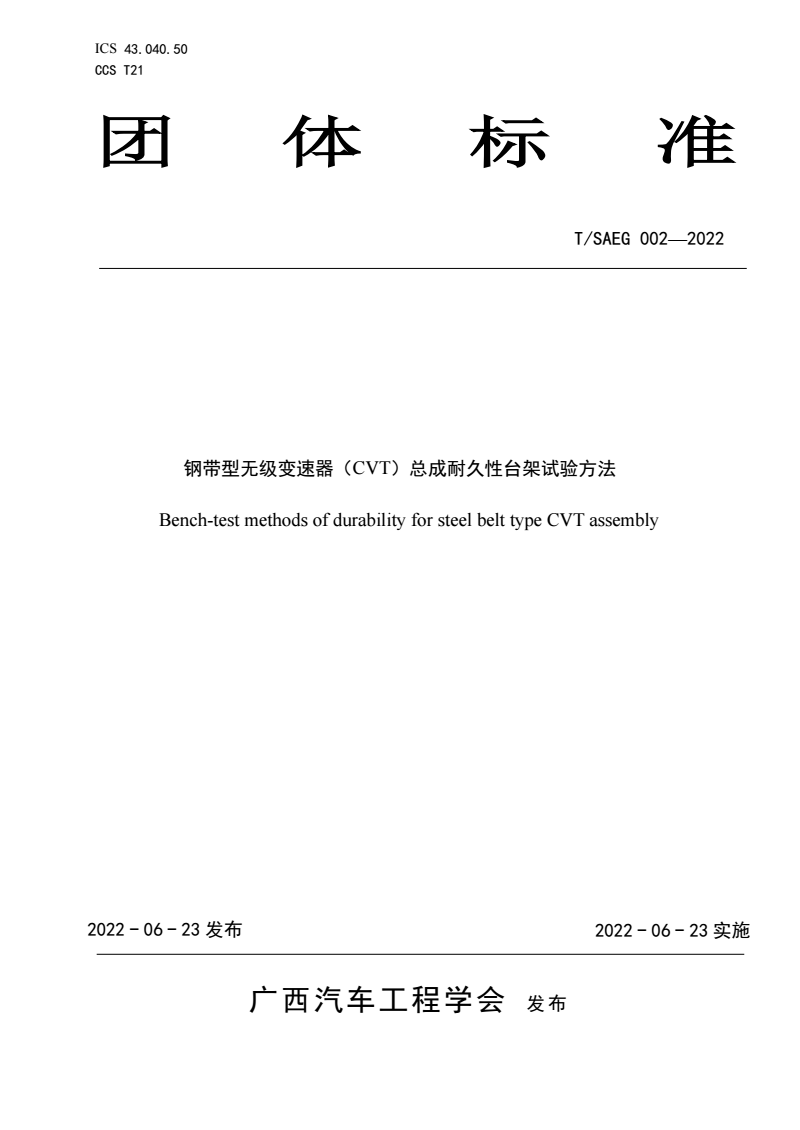 英文名称:Bench-test methods of durability for steel belt type CVT assembly