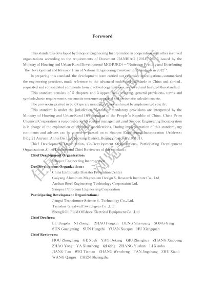 标准名称:工业企业电气设备抗震鉴定标准(英文版)