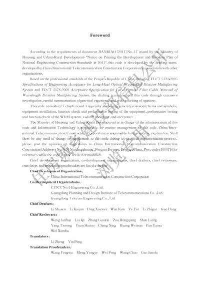英文名称:Code for acceptance of wavelength division multiplexing(WDM)optical fiber transmission system engineering