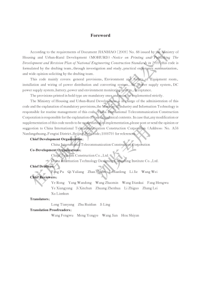 英文名称:Code for acceptance of construction engineering of telecommunication power supply facility