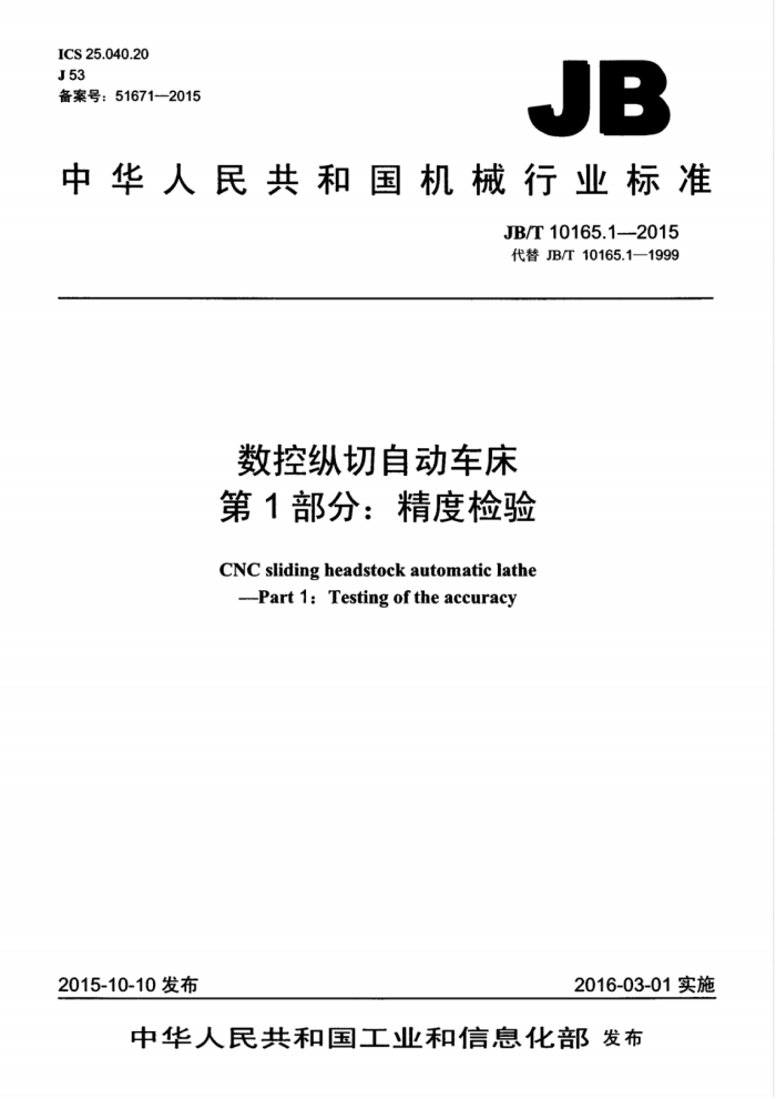 英文名称:CNC sliding headstock automatic lathe -Part 1:Testing of the accuracy