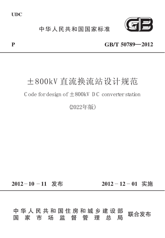 英文名称:Code for design of ±800kV DC converter station