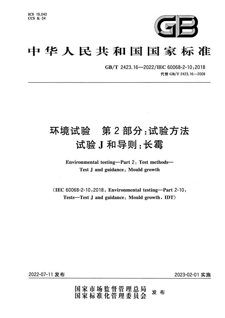 GB/T 2423.16-2022 环境试验 第2部分:试验方法 试验J和导则:长霉