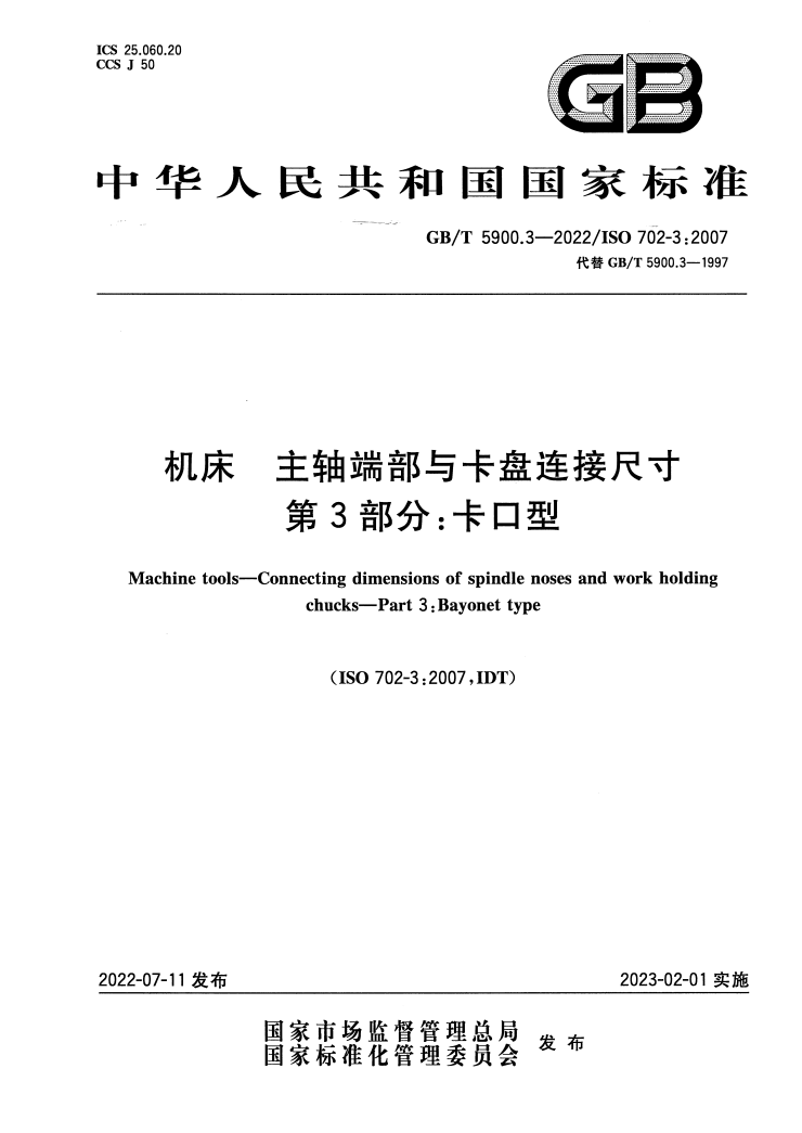 GB/T 5900.3-2022 机床 主轴端部与卡盘连接尺寸 第3部分:卡口型