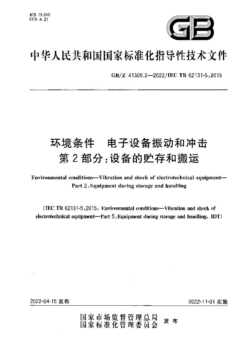 GB/Z 41305.2-2022 环境条件 电子设备振动和冲击 第2部分:设备的贮存和搬运