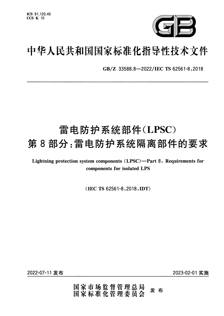 GB/Z 33588.8-2022 雷电防护系统部件(LPSC) 第8部分:雷电防护系统隔离部件的要求