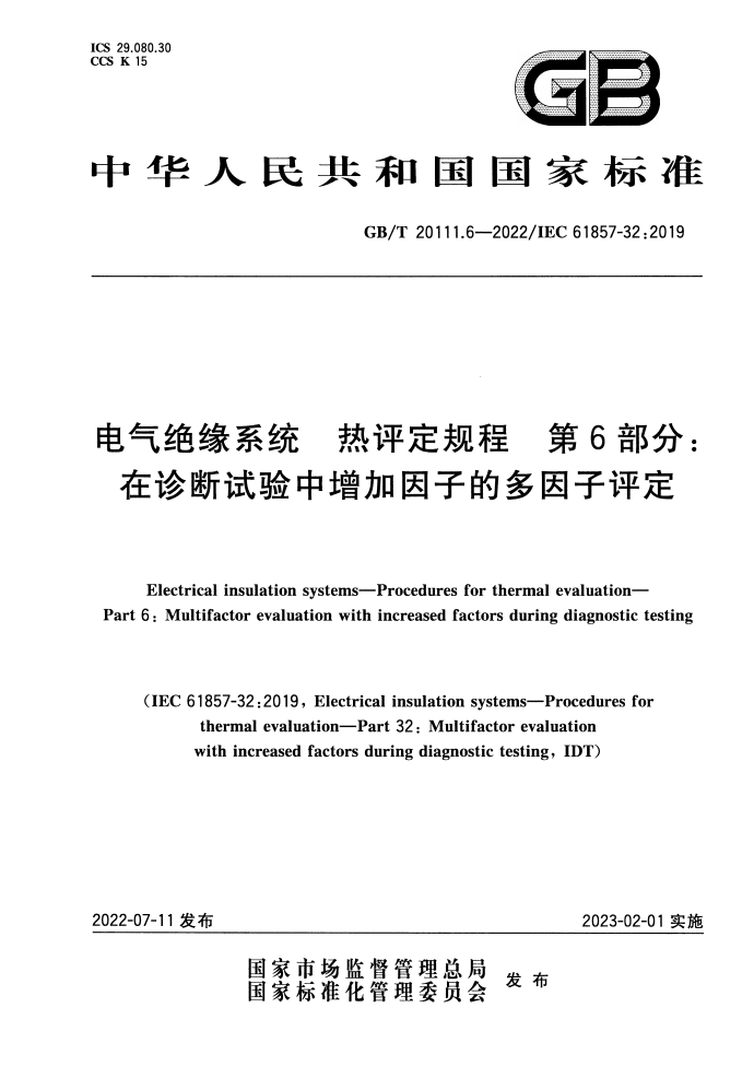 标准名称:电气绝缘系统 热评定规程 第6部分:在诊断试验中增加因子的多因子评定