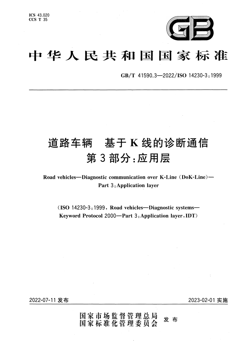 GB/T 41590.3-2022 道路车辆 基于K线的诊断通信 第3部分:应用层