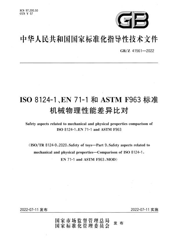 英文名称:Safety aspects related to mechanical and physical properties comparison of ISO 8124-1,EN 71-1 and ASTM F963
