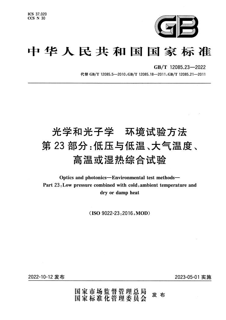 标准名称:光学和光子学 环境试验方法 第23部分:低压与低温、大气温度、高温或湿热综合试验