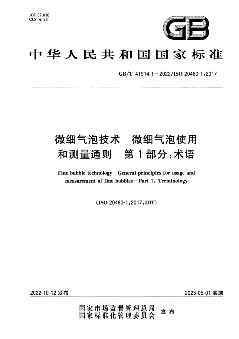 GB/T 41914.1-2022 微细气泡技术 微细气泡使用和测量通则 第1部分:术语