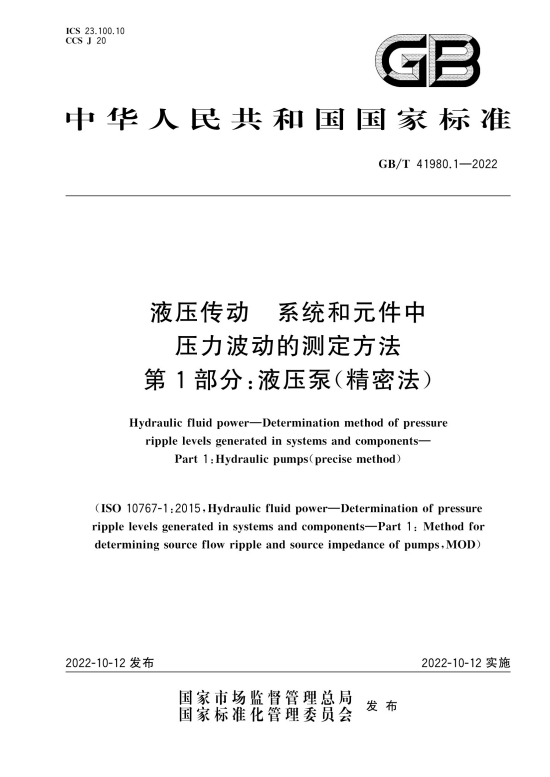 标准名称:液压传动 系统和元件中压力波动的测定方法 第1部分:液压泵(精密法)
