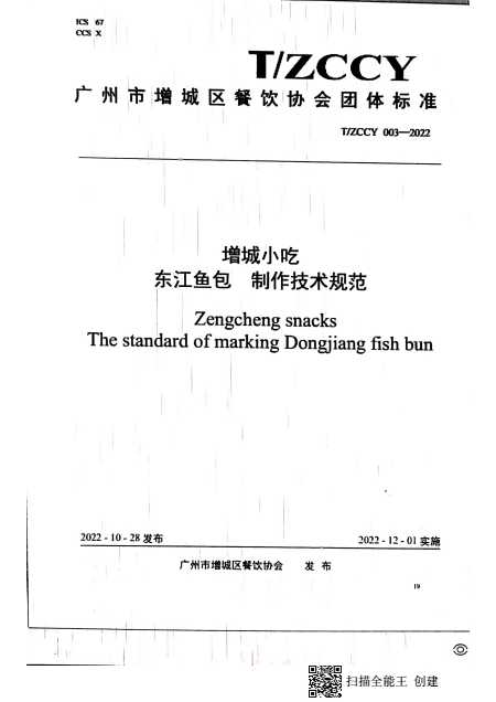 英文名称:Zengcheng snacks The standard of marking Dongjiang fish bun