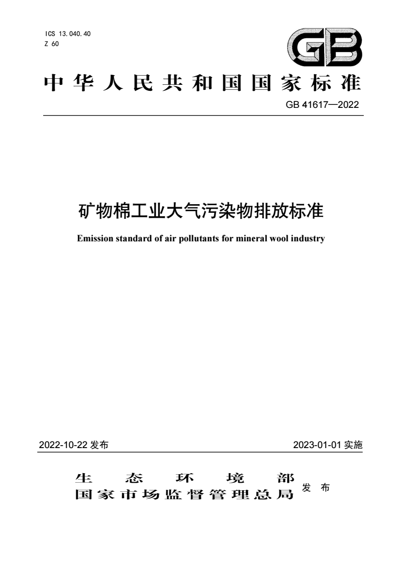 GB 41617-2022 矿物棉工业大气污染物排放标准