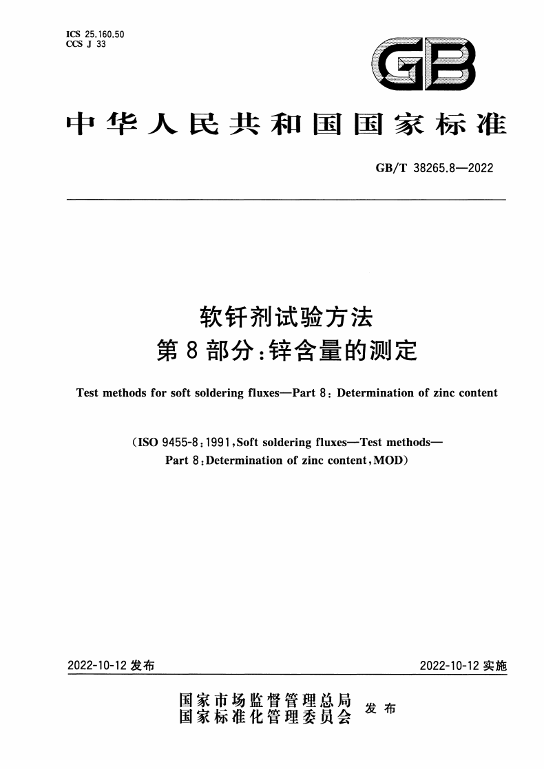 英文名称:Test methods for soft soldering fluxes—Part 8:Determination of zinc content