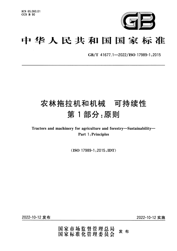 标准名称:农林拖拉机和机械 可持续性 第1部分:原则