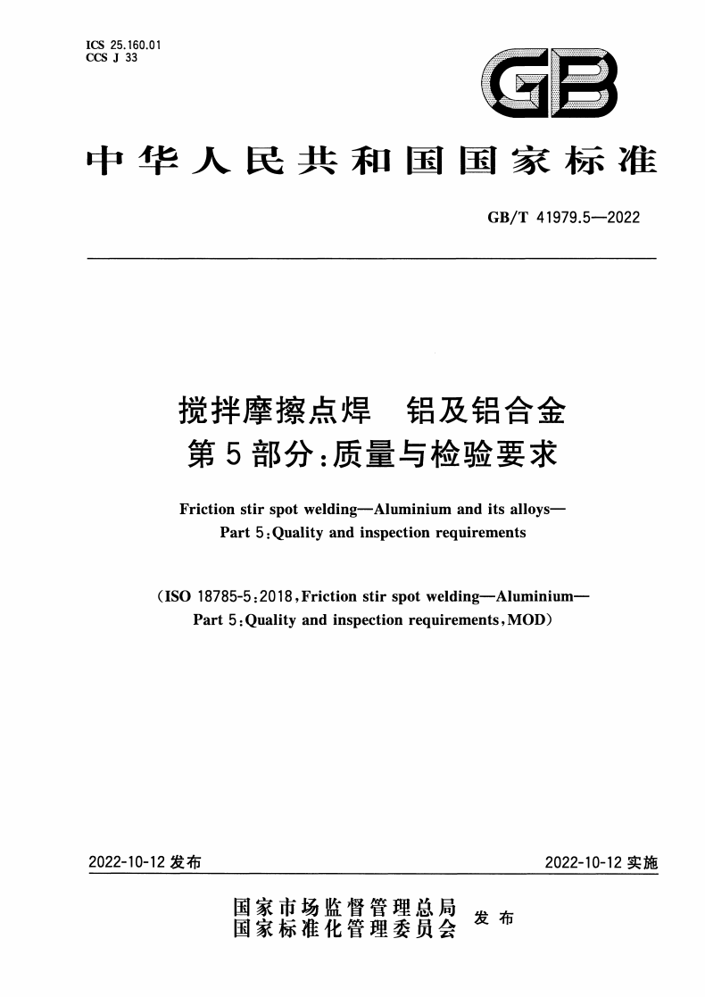 GB/T 41979.5-2022 搅拌摩擦点焊 铝及铝合金 第5部分: 质量与检验要求