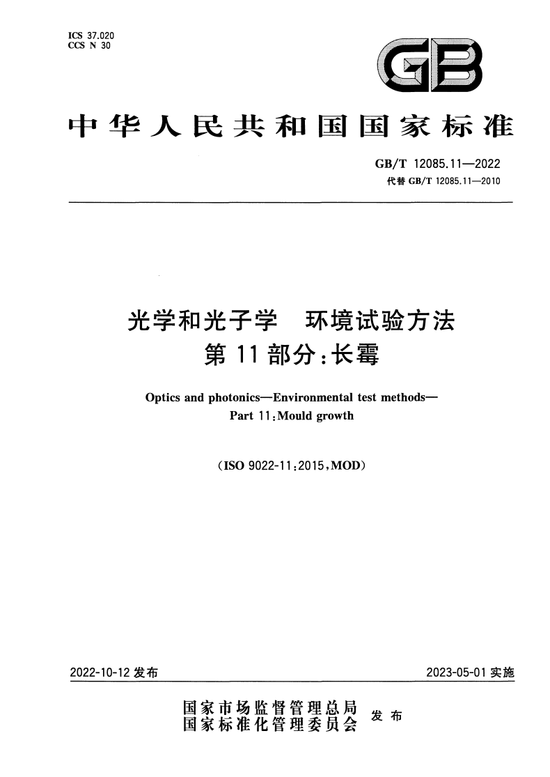 英文名称:Optics and photonics—Environmental test methods—Part 11:Mould growth