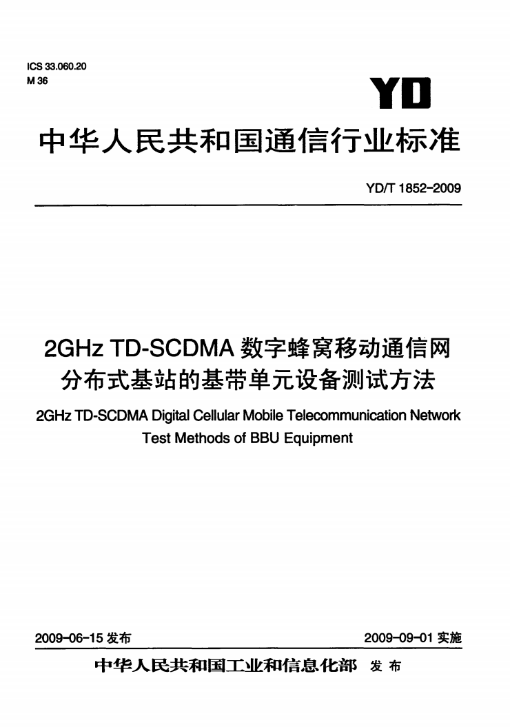 本标准适用于2GHz TD-SCDMA 数字蜂窝移动通信网的分布式基站的基带单元部分。