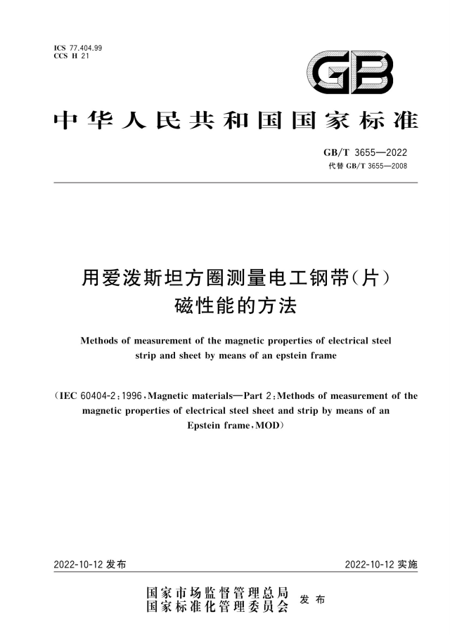 标准名称:用爱泼斯坦方圈测量电工钢带(片)磁性能的方法