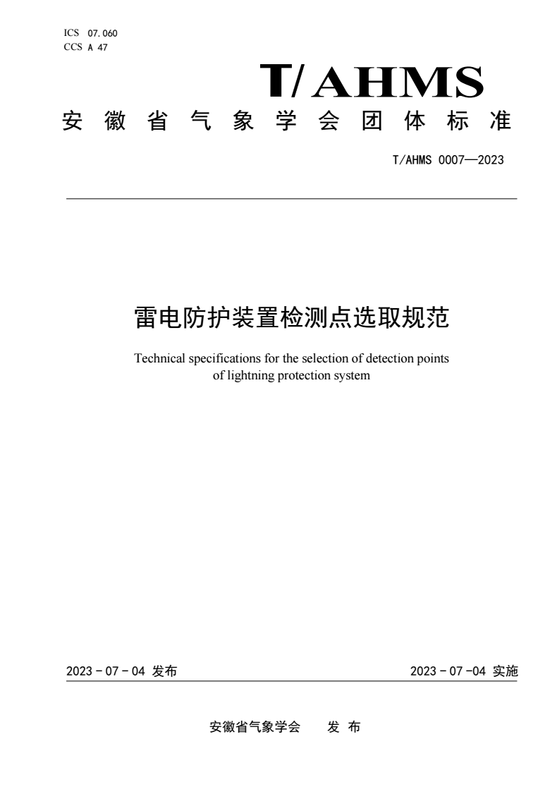 英文名称:Technical specifications for the selection of detection points of lightning protection system