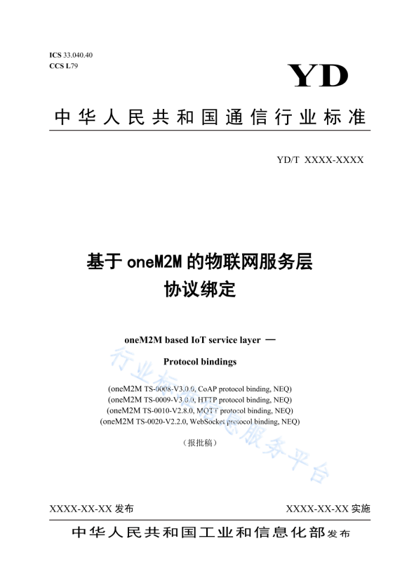 标准名称:基于oneM2M的物联网服务层 协议绑定