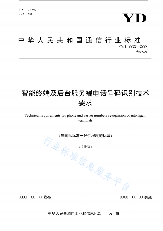 标准名称:智能终端及后台服务端电话号码识别技术要求