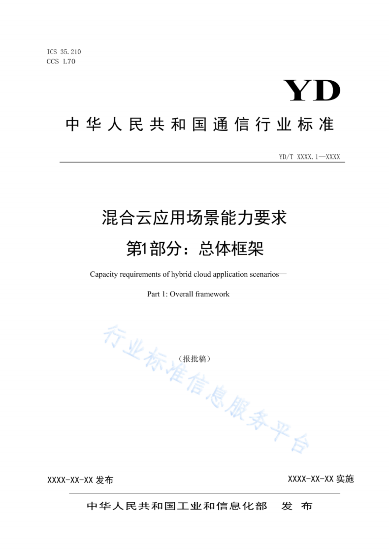 标准名称:混合云应用场景能力要求 第1部分:总体框架