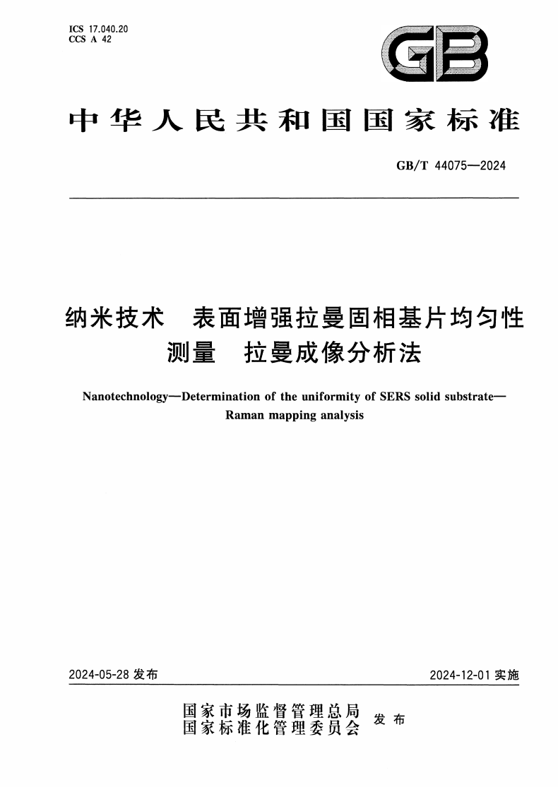 英文名称:Nanotechnology—Determination of the uniformity of SERS solid substrate—Raman mapping analysis