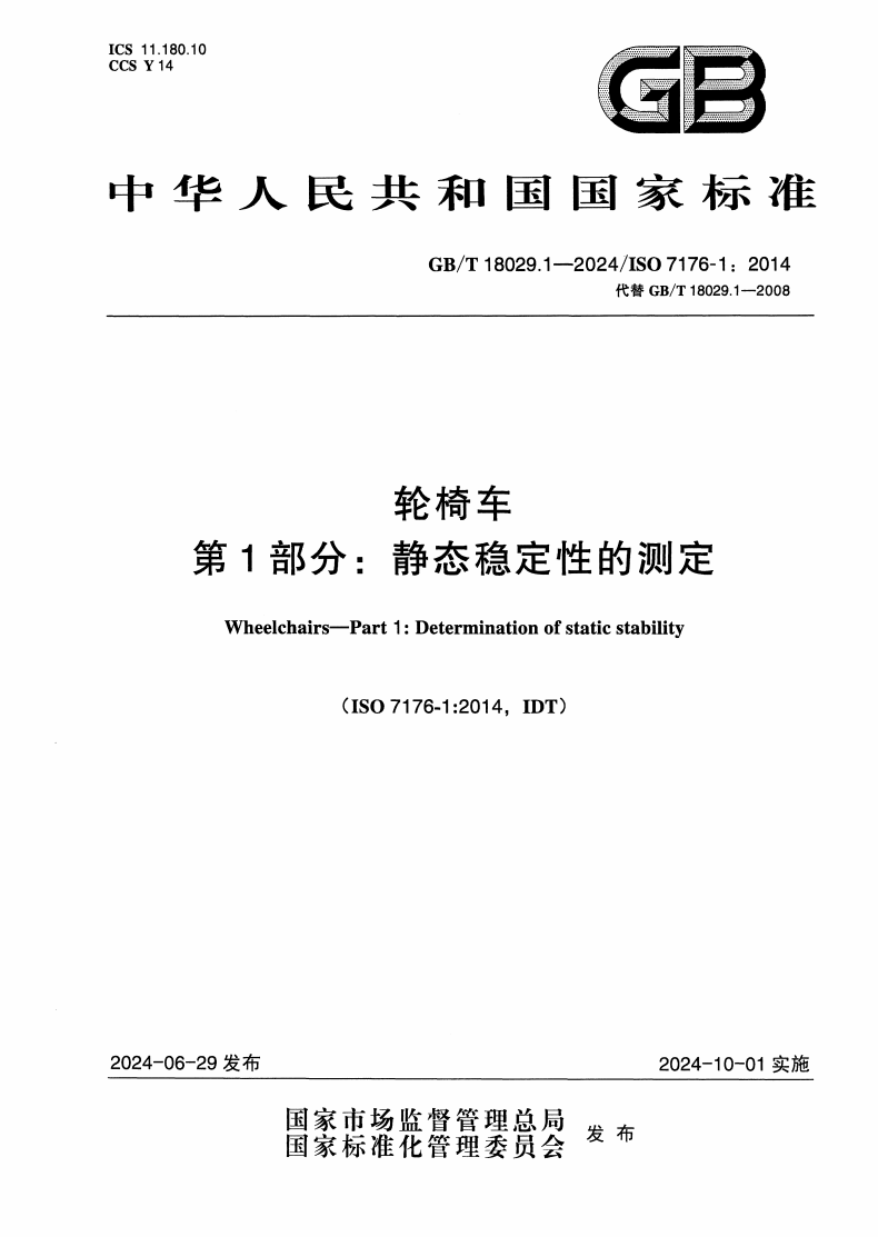 英文名称:Wheelchairs—Part 1:Determination of static stability