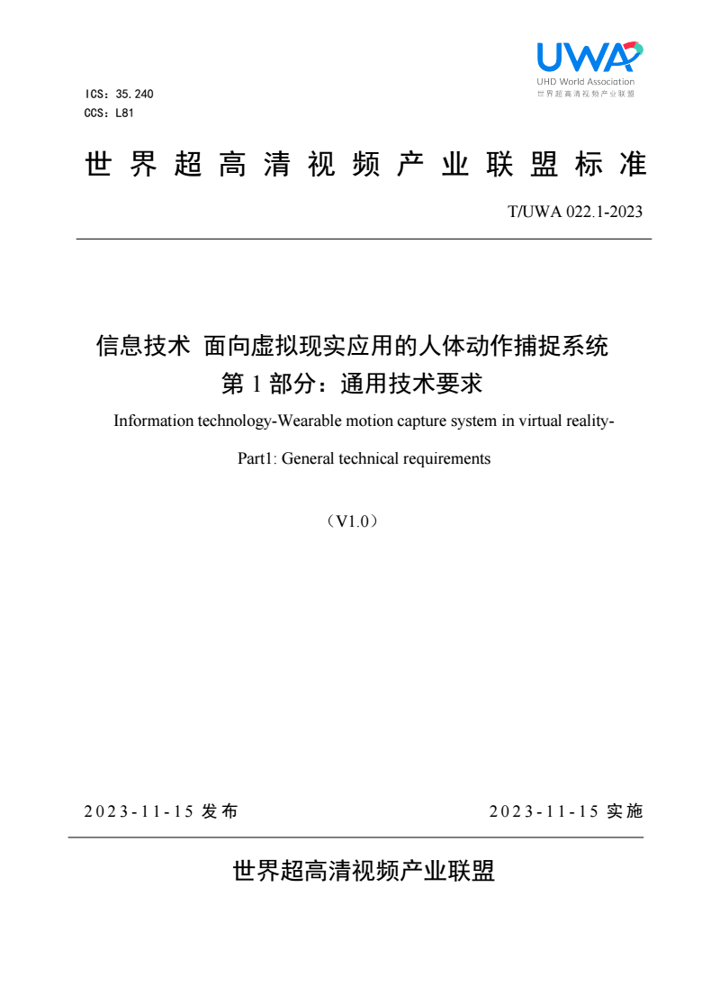 T/UWA 022.1-2023 信息技术 面向虚拟现实应用的人体动作捕捉系统 第 1 部分:通用技术要求