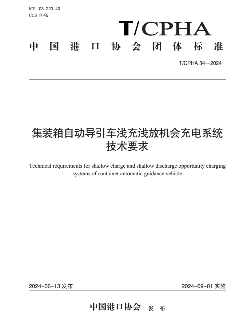 英文名称:Technical requirements for shallow charge and shallow discharge opportunity charging systems of container automatic guidance vehicle