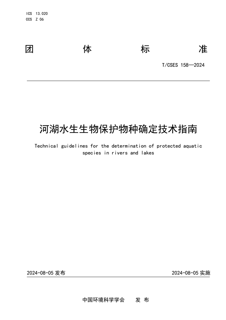 英文名称:Technical guideline for the determination of protected species of aquatic organisms of rives and lakes