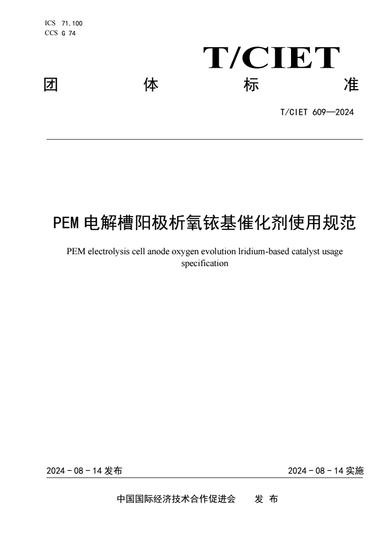 T/CIET 609-2024 PEM电解槽阳极析氧铱基催化剂使用规范